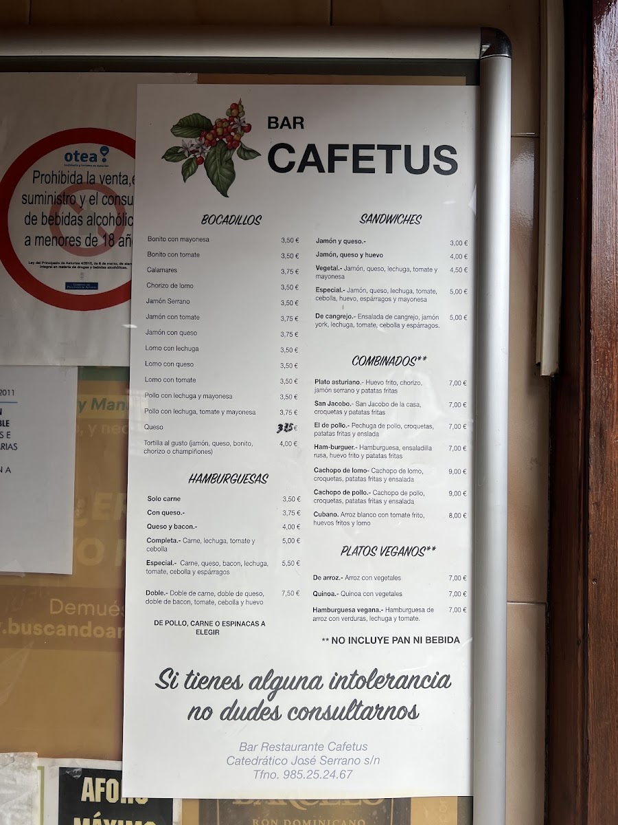 Located in the heart of Oviedo, Asturias, Bar Cafetus is a culinary gem that invites food lovers to savor authentic Spanish cuisine. The essence of Bar Cafetus lies in its affordable daily menu, priced at just €11, which includes a first course, a second, dessert, and coffee. Diners rave about the hearty “platos de cuchara”—soulful, homemade dishes that warm the heart and satisfy the palate.